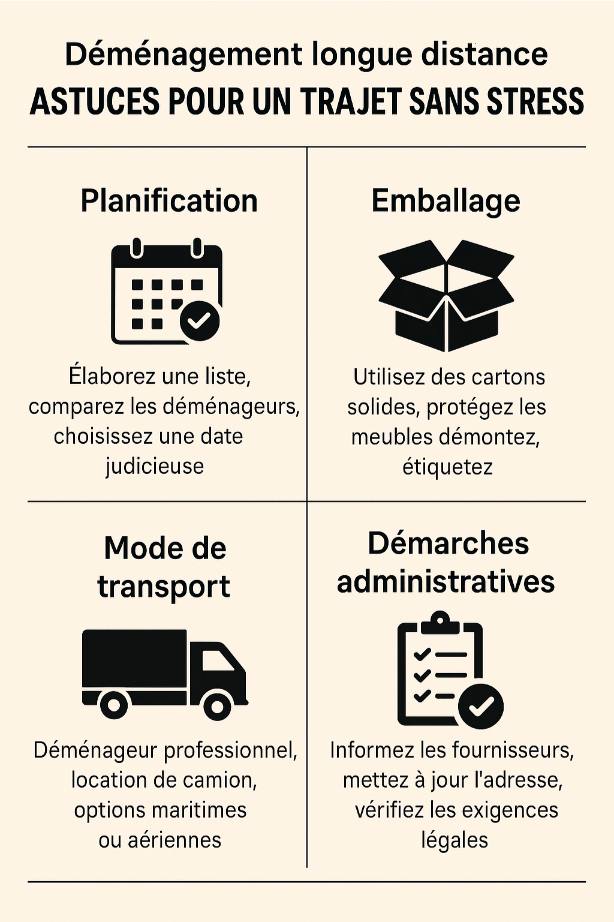 Vous préparez un déménagement longue distance, une aventure pleine d’émotions contrastées. Entre excitation et appréhension, l’idée de tout transporter vers un nouvel logement peut sembler colossale. Mais ne vous inquiétez pas, nous sommes là pour vous accompagner. Dans cet article, nous vous proposerons des conseils pratiques et des stratégies efficaces pour gérer chaque étape de ce périple sans tracas. Avec des astuces intelligentes et des solutions adéquates, transformer votre déménagement en une expérience sereine et organisée devient possible.